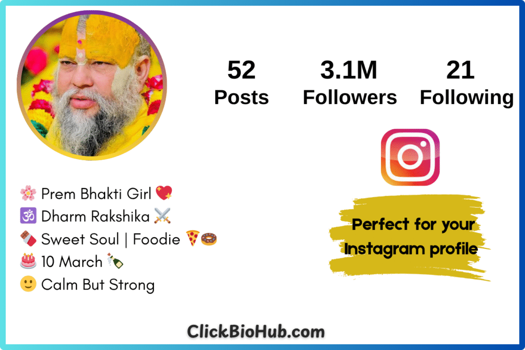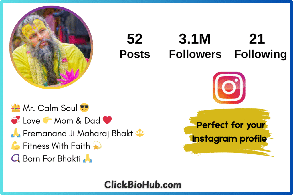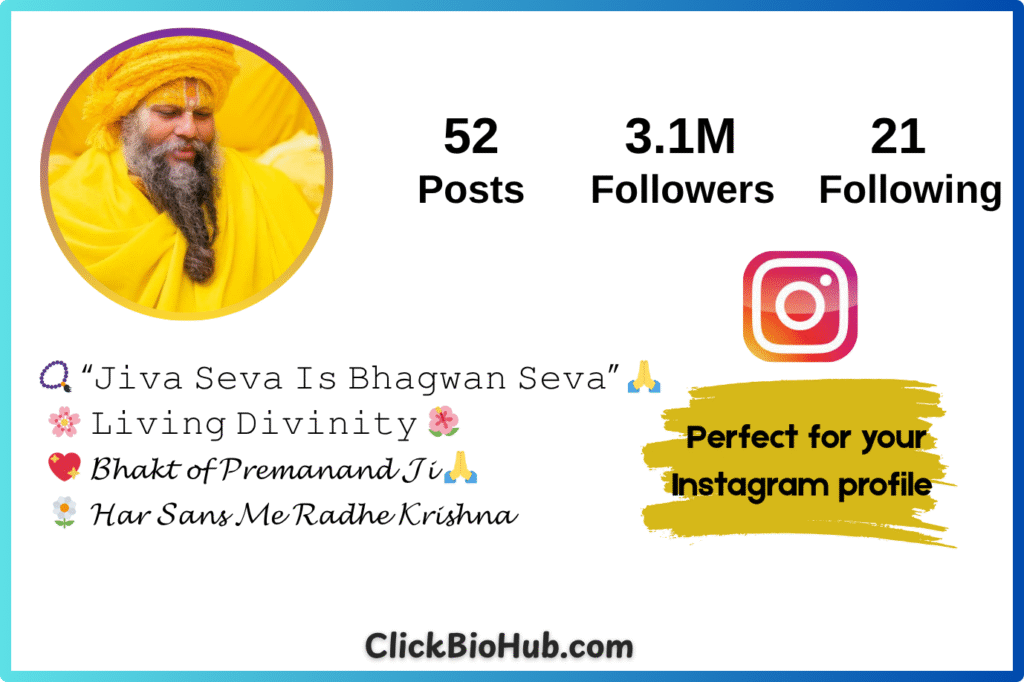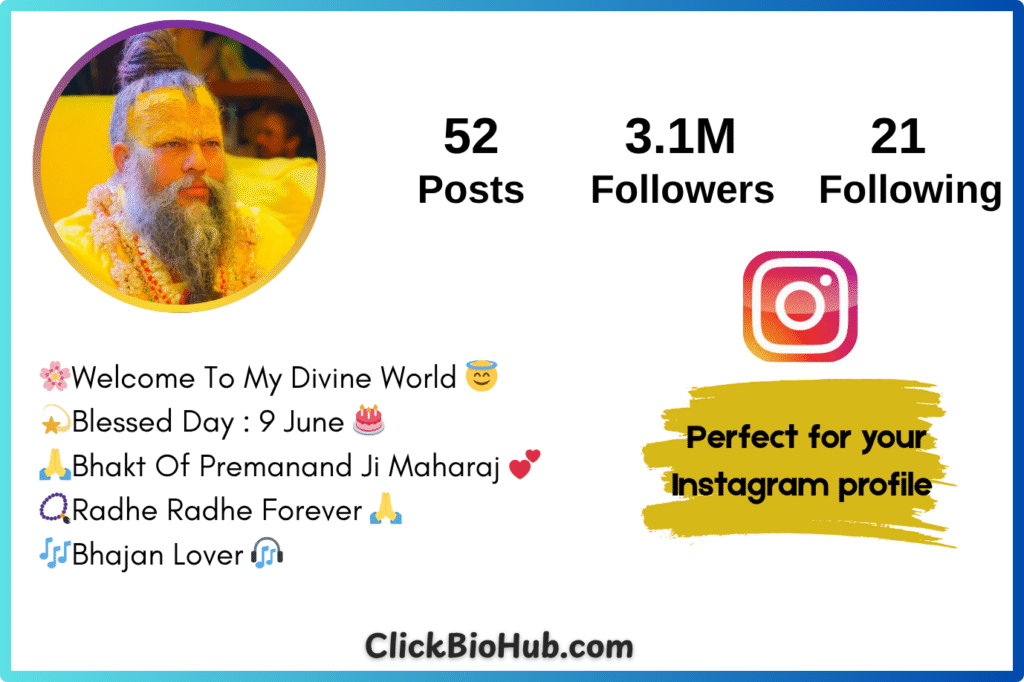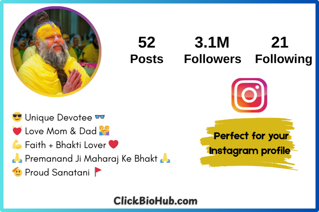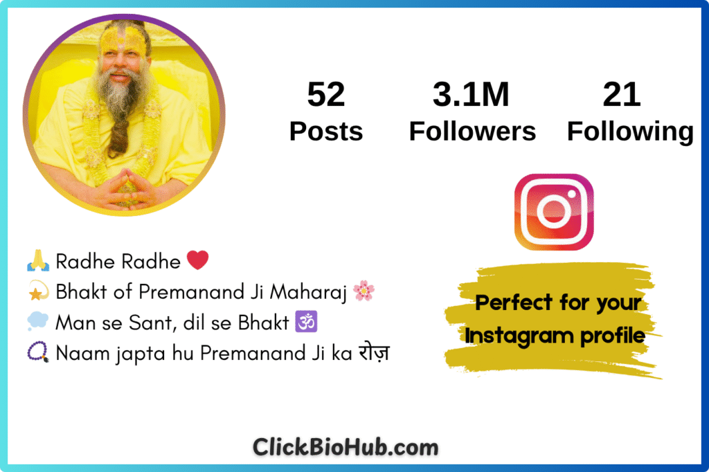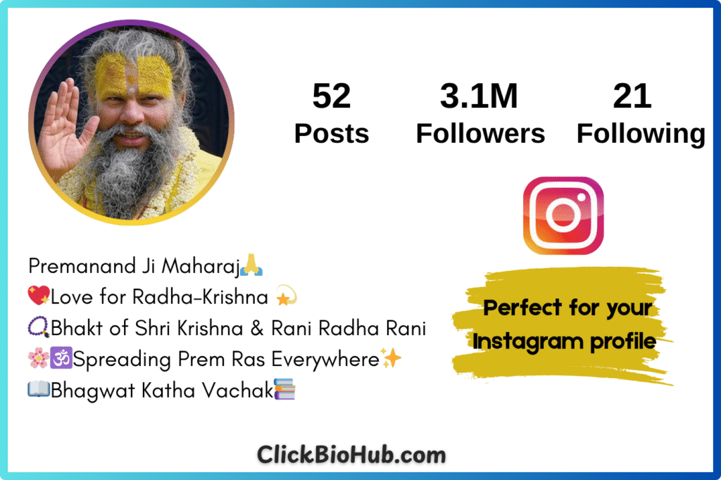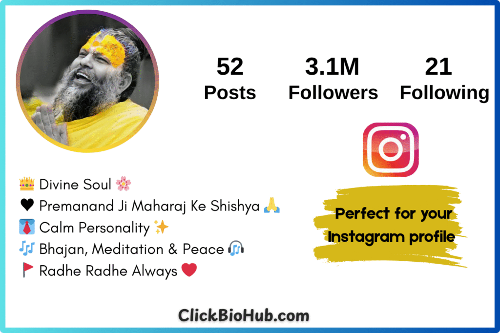 यहाँ आपको मिलेंगे Premanand Ji Maharaj Bio – Spiritual, Stylish, Attractive, Attitude और ऐसे Instagram bios जो आपकी faith और positivity को खूबसूरती से reflect करेंगे।